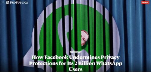 2019 年 3 月,扎克伯格公布了一項新的 「以隱私為中心的愿景」,他將旗下消息應用程序 WhatsApp 的「端到端加密」模式作為榜樣,「端到端加密」指只有發送方和接收方能讀取消息,其他人甚至 WhatsApp 官方都無法查看。